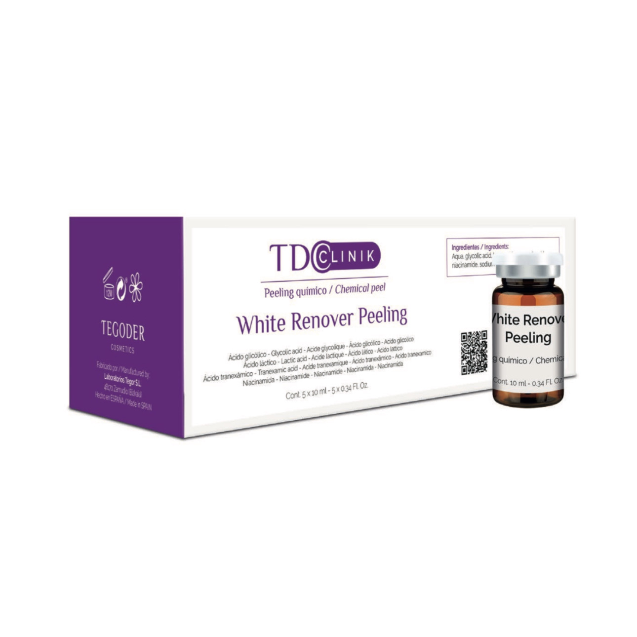 WHITE RENOVER PEELING è un peeling chimico depigmentante, antietà e illuminante. Ha una concentrazione del 29% di acidi glicolico, lattico e tranexamico. Arricchito con niacinamide (vitamina B3).